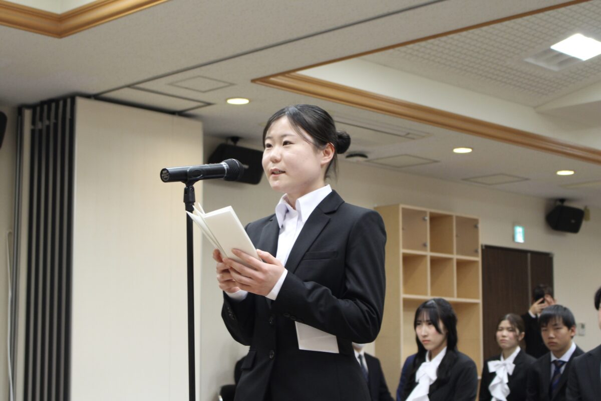 真新しいスーツに身を包んだ新入生の皆さんは、少し緊張した表情を見せながらも、これから始まる学院生活への期待を胸に式に臨んでいました。表情からは新たな一歩を踏み出す前向きな気持ちが感じられました。
